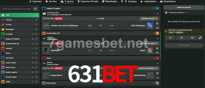 A aposta 631Bet oferece aos jogadores a experiência mais conveniente de apostas em eSports!